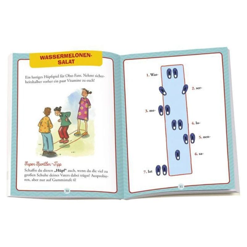Die Schritt-für-Schritt-Anleitungen und die Spielfeldskizzen sind ideal für alle Wiedereinsteiger:innen (aka mich) und Neu-Twistler. Weil ja: Die Kids sind jetzt auch am Hüpfen. Und ich sehe ziemlich alt daneben aus 👵🏼.
