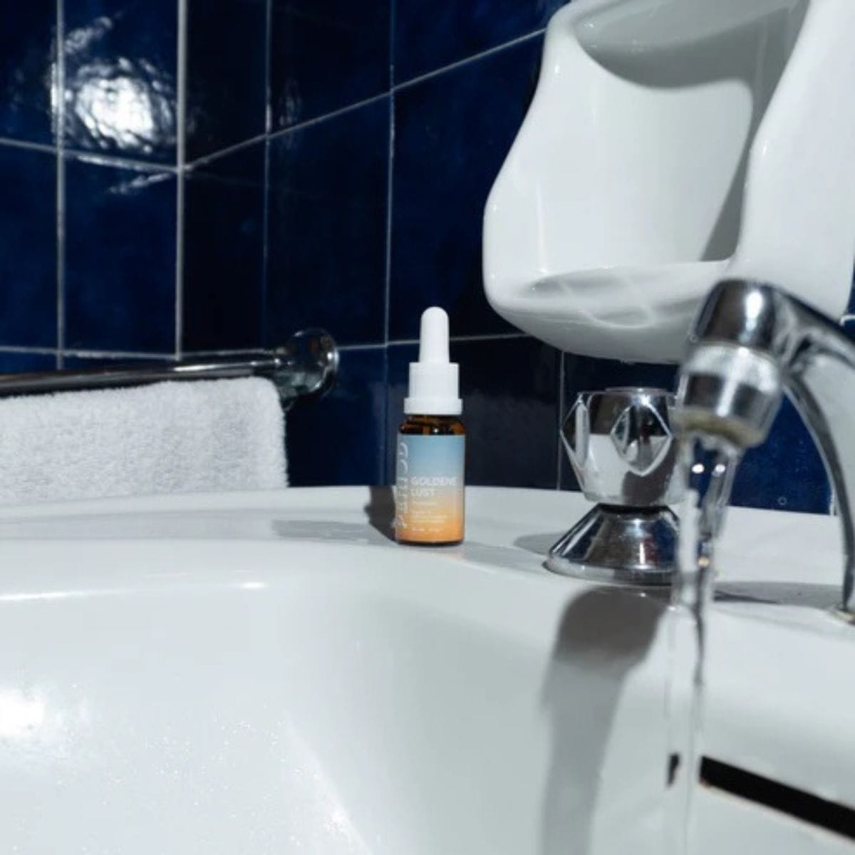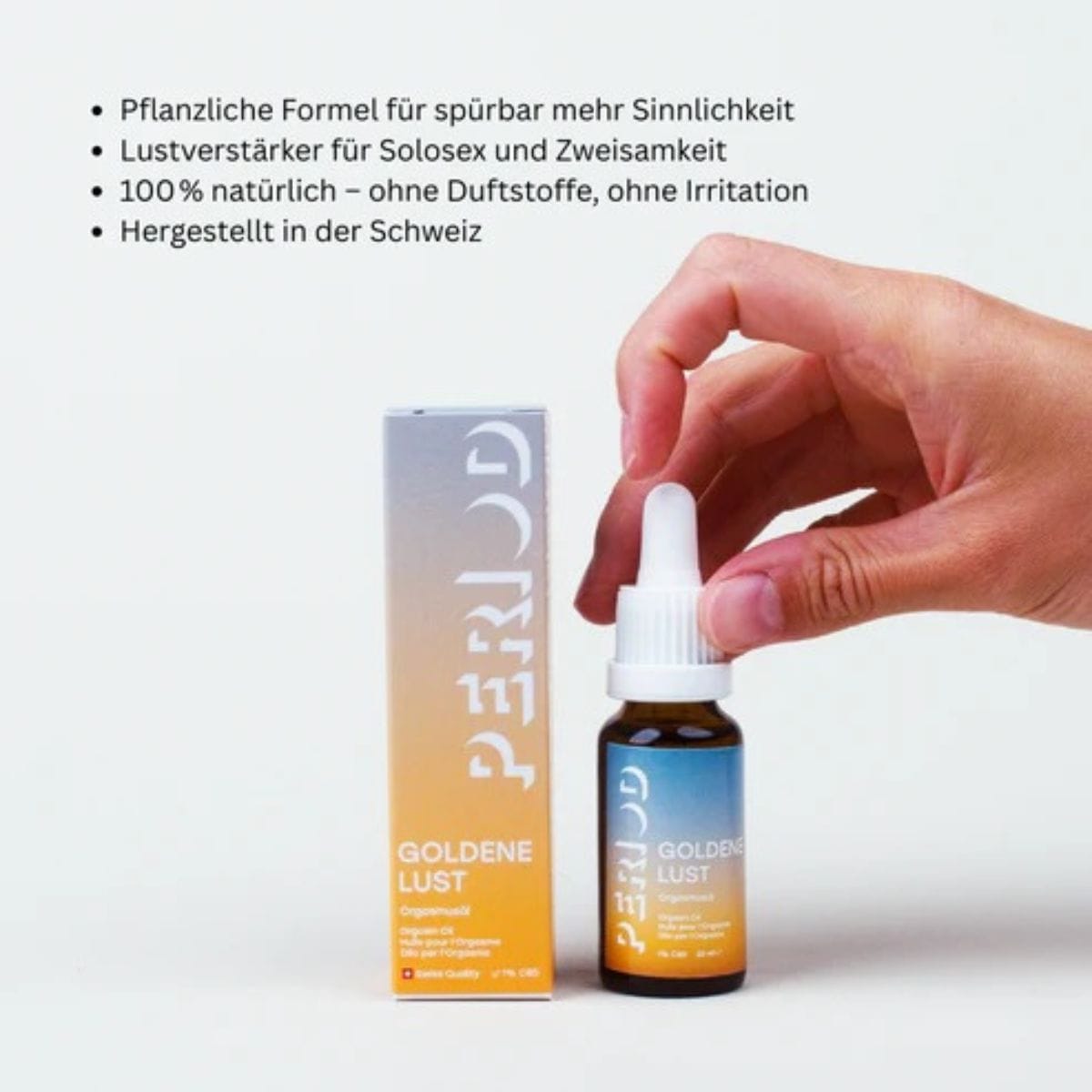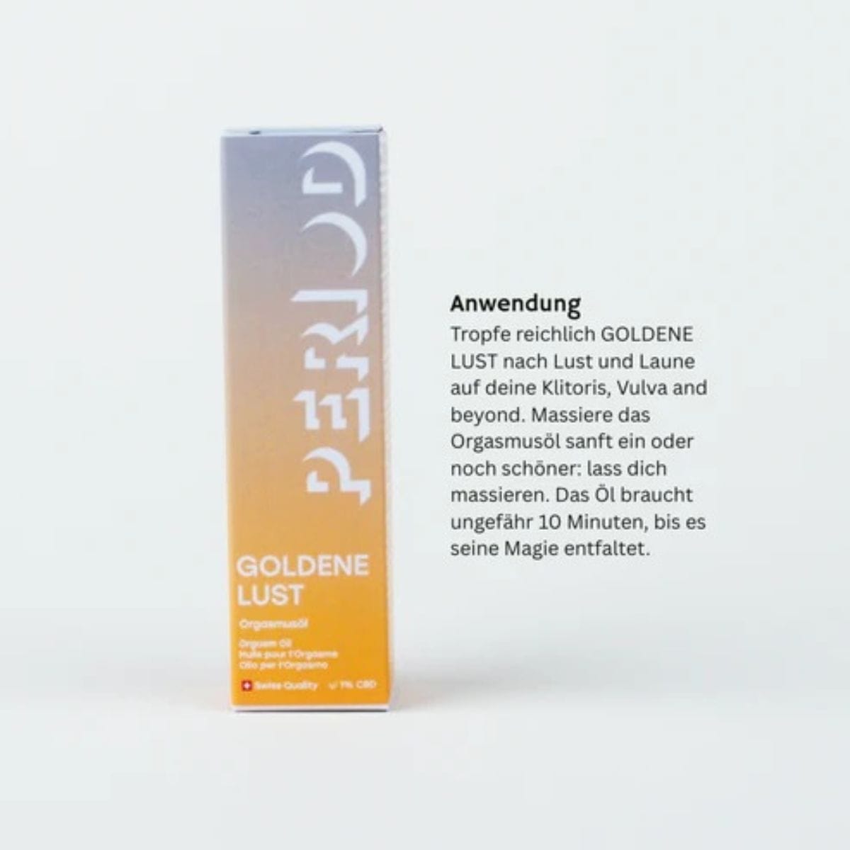 Die Goldene Lust kommt, wie üblich bei den Produkten von Period, ganz ohne Zusatzstoffe aus. Die Tropfen werden in der Schweiz frisch und in kleinen Chargen hergestellt. Weil das so sympathisch ist, haben wir auch